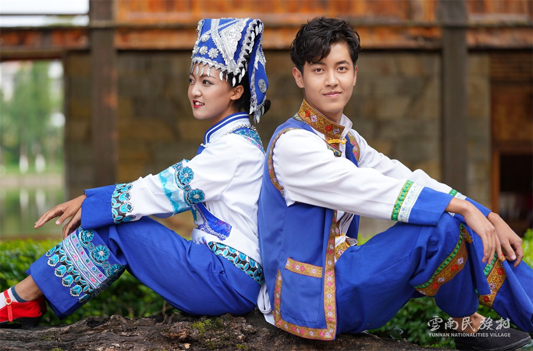 彝族在云南境內(nèi)約471萬人,是省內(nèi)人口最多、分布最廣的少數(shù)民族,主要聚居在金沙江、元江流域和哀牢山、無量山腹地。彝族是一個(gè)能歌善舞的民族,民間打歌、跳樂之風(fēng)盛行,大三弦、跌腳舞久負(fù)盛名。火把節(jié)是彝族最具特色的民族節(jié)日。彝族村占地50余畝,三虎浮雕墻與虎頭內(nèi)祖師形象表現(xiàn)了彝族虎鷹文化。太陽歷廣場圖騰柱上有太陽、虎、火和八卦圖形象,周圍環(huán)繞著10個(gè)朝向不同的月球造型,外圓周有12生肖石雕。依山而建的“...